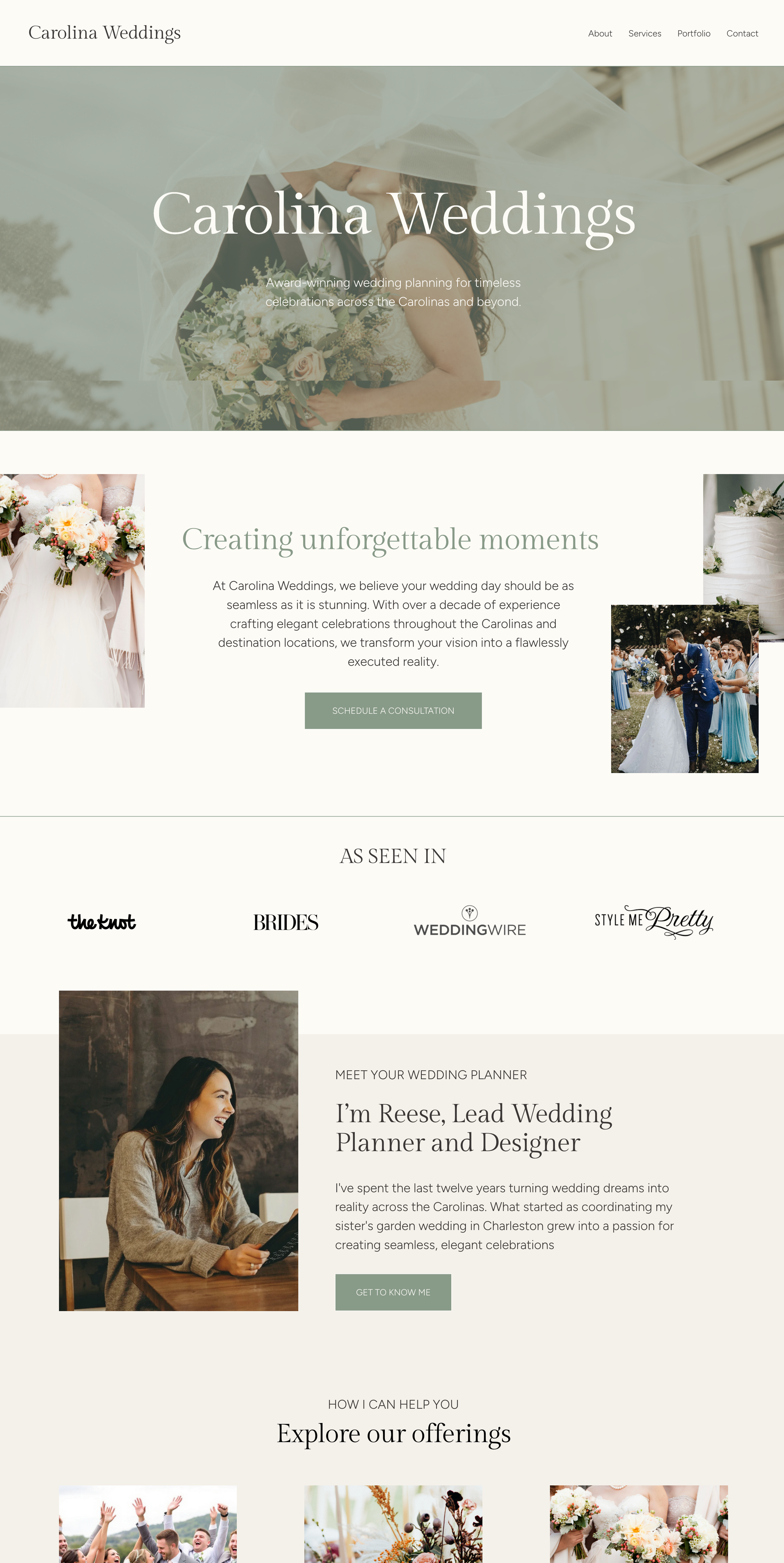 A luxury wedding planner website designed to attract ideal clients, clearly showcase services, and convert visitors into inquiries—created for wedding planners and vendors seeking a refined online presence.